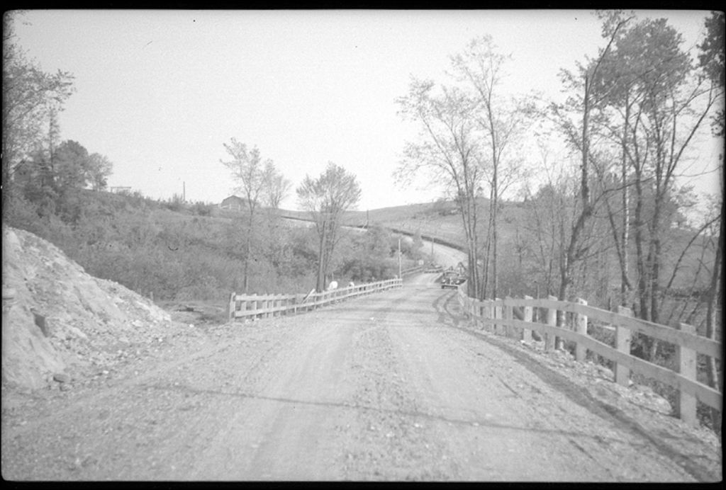 Pont sur le ruisseau Rouge à Lingwick, comté Compton, 1942, Archives nationales à Québec, Fonds Ministère de la Culture et des Communications, (03Q,E6,S7,SS1,D2,P6468), L. Martin.