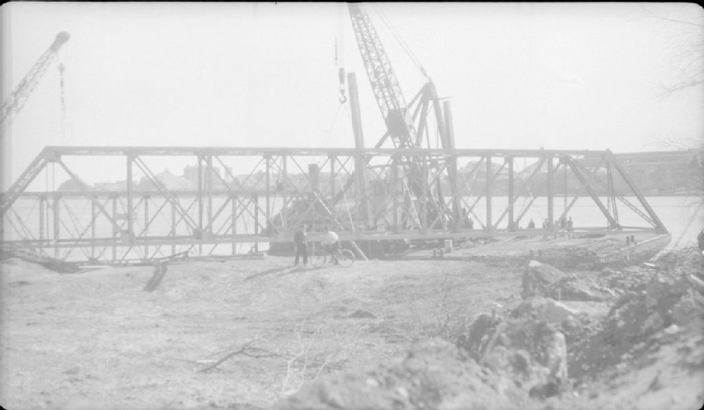 La construction d'un pont, 1948, Archives nationales à Québec, Fonds Ministère de la Culture et des Communications, (03Q,E6,S7,SS1,D2,P65145), J.M. Reid.