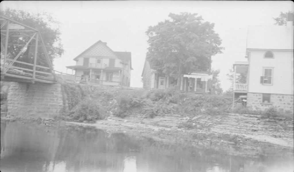 Vue de la rive gauche en aval du pont actuel sur la rivière de l'Achigan à L'Épiphanie, comté de L'Assomption