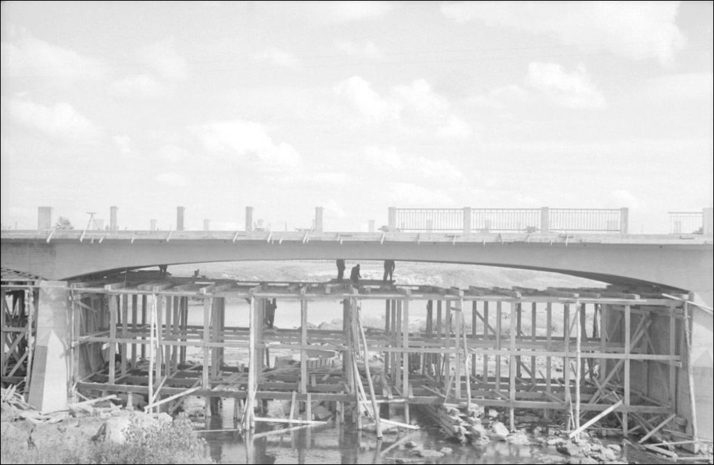 La dalle du pont Larocque avant la pose du garde-corps à Notre-Dame-du-Bon-Conseil, comté de Drummond, 1948, Archives nationales à Québec, Fonds Ministère de la Culture et des Communications, (03Q,E6,S7,SS1,D2,P65528), Louis-Philippe Poudrier.
