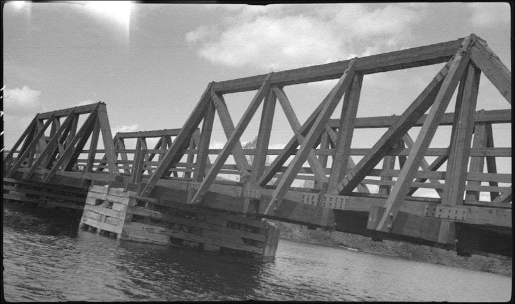 Pont sur la rivière croche à La Croche, comté de Laviolette, 1942, Archives nationales à Québec, Fonds Ministère de la Culture et des Communications, (03Q,E6,S7,SS1,D2,P6604), Irénée Beaudet.