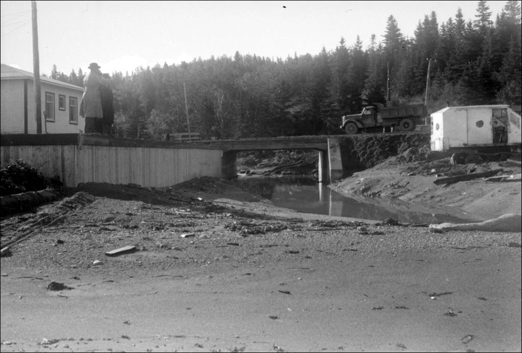 Ponceau sur la route Sainte-Luce-Luceville à Sainte-Luce, comté de Rimouski, 1948, Archives nationales à Québec, Fonds Ministère de la Culture et des Communications, (03Q,E6,S7,SS1,D2,P66714), Roméo Savary.