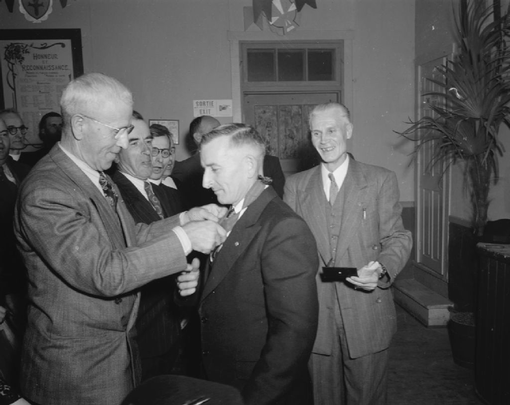 La remise d'une médaille, 1948, Archives nationales à Québec, Fonds Ministère de la Culture et des Communications, (03Q,E6,S7,SS1,D2,P66859), François Fleury.