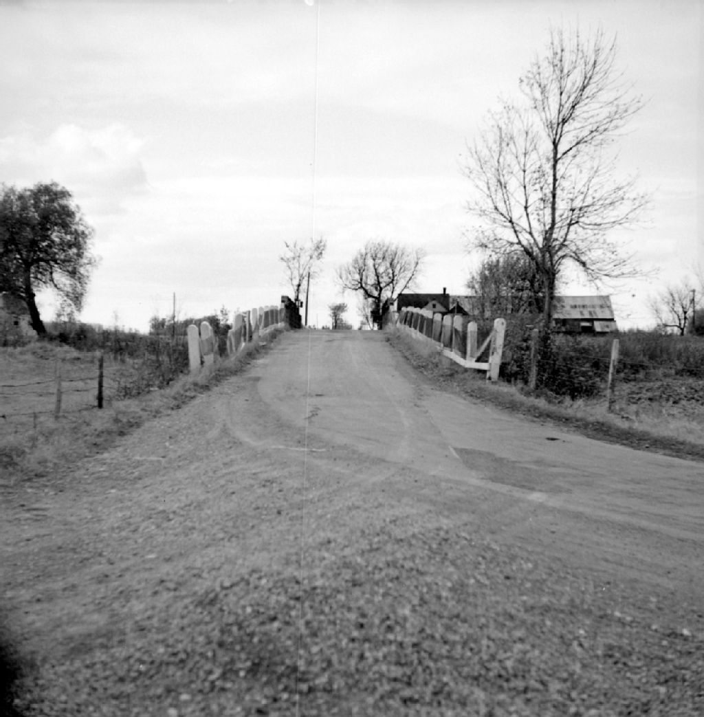 Pont Larocque sur la rivière Saint-Louis, rang 4e concession, lot 172, à Saint-Louis-de-Gonzague, comté de Beauharnois, 1948, Archives nationales à Québec, Fonds Ministère de la Culture et des Communications, (03Q,E6,S7,SS1,D2,P66932), C.R. Yespelkis.