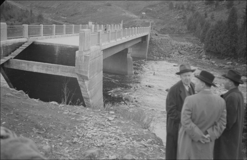 Pont sur la Rivière-Ouelle sur la route entre Saint-Gabriel et Saint-Onésime, comté de Kamouraska, 1948, Archives nationales à Québec, Fonds Ministère de la Culture et des Communications, (03Q,E6,S7,SS1,D2,P67681), Olivier Desjardins.