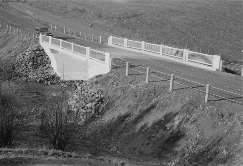 Pont Taché sur le ruisseau Cuillère-à-Pot à Saint-Paul-de-Montmagny. Vue en aval, 1948, Archives nationales à Québec, Fonds Ministère de la Culture et des Communications, (03Q,E6,S7,SS1,D2,P67699), J. Émile Chevalier.