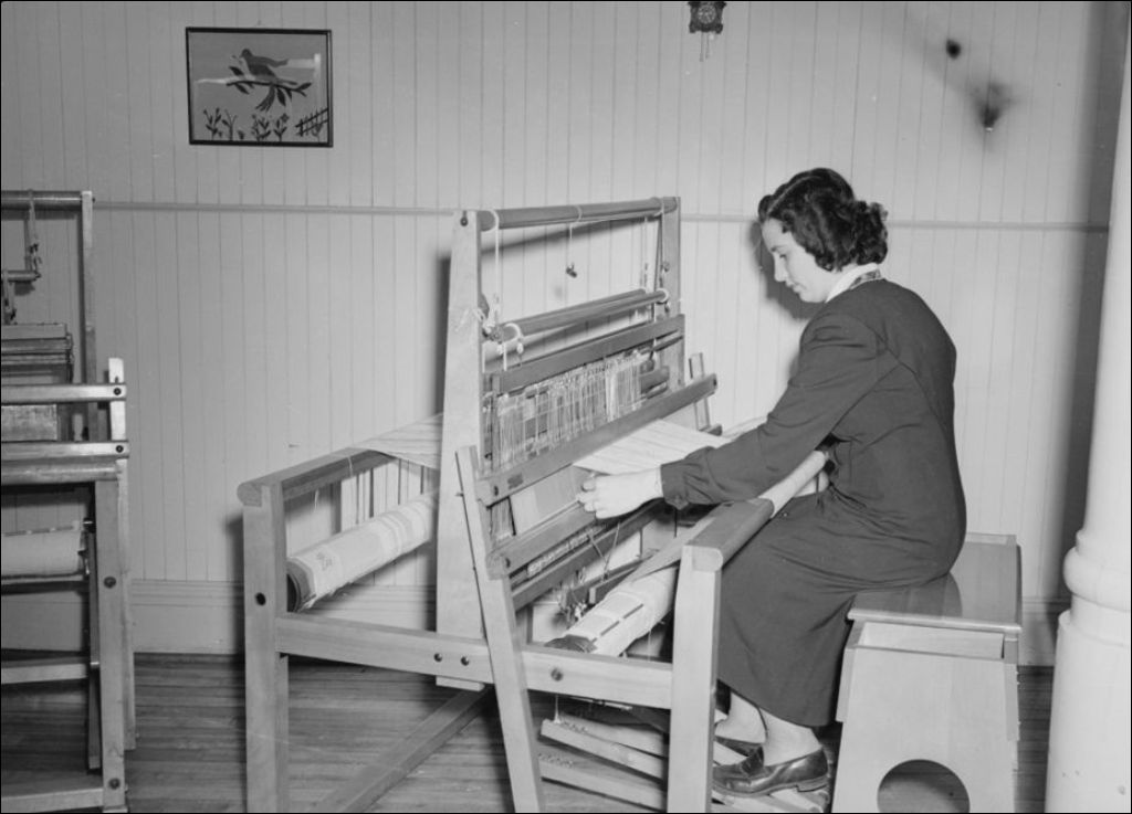 Cours de tissage dans une école d'enseignement ménager