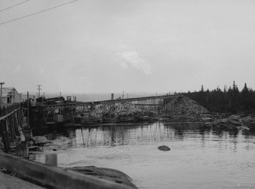 Dalle sèche servant à transporter le bois inutilisable aux empilements de déchets au moulin de Shelter Bay