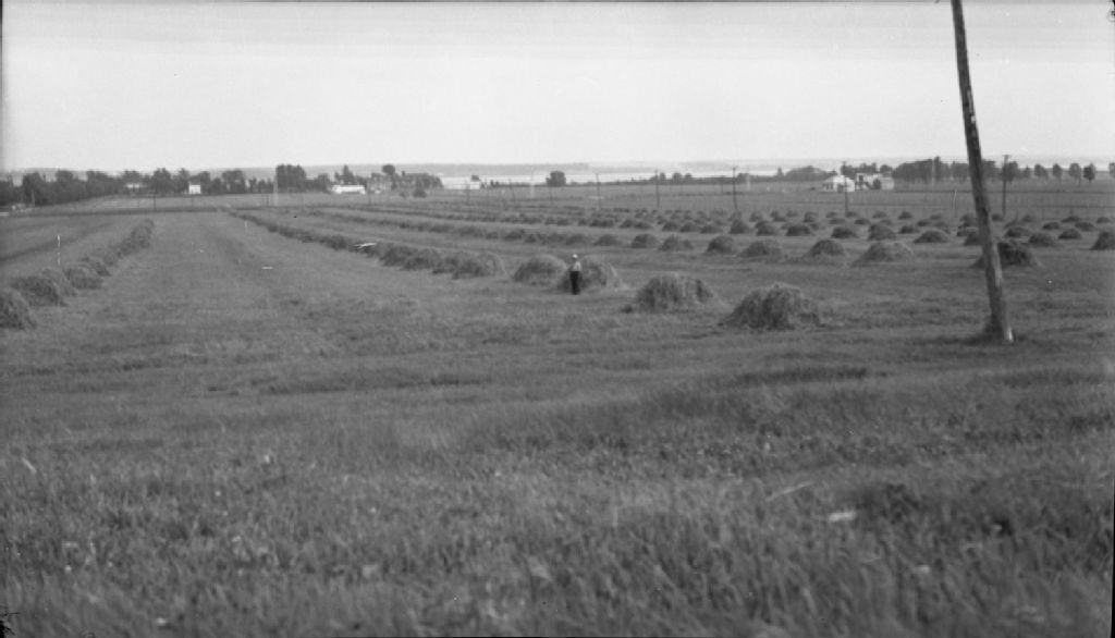 Récolte de foin de trèfle et luzerne à la Ferme de Deschambault, 1948, Archives nationales à Québec, Fonds Ministère de la Culture et des Communications, (03Q,E6,S7,SS1,D2,P68584), Andréa Saint-Pierre.