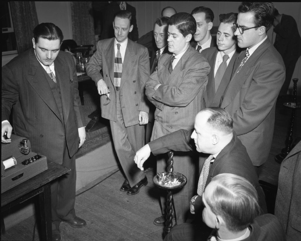 Démonstration de « Watch Master » et cours de monsieur Loca. Château Frontenac. Association des bijoutiers de la Cité de Québec, 1949, Archives nationales à Québec, Fonds Ministère de la Culture et des Communications, (03Q,E6,S7,SS1,D2,P68970), Neuville Bazin.
