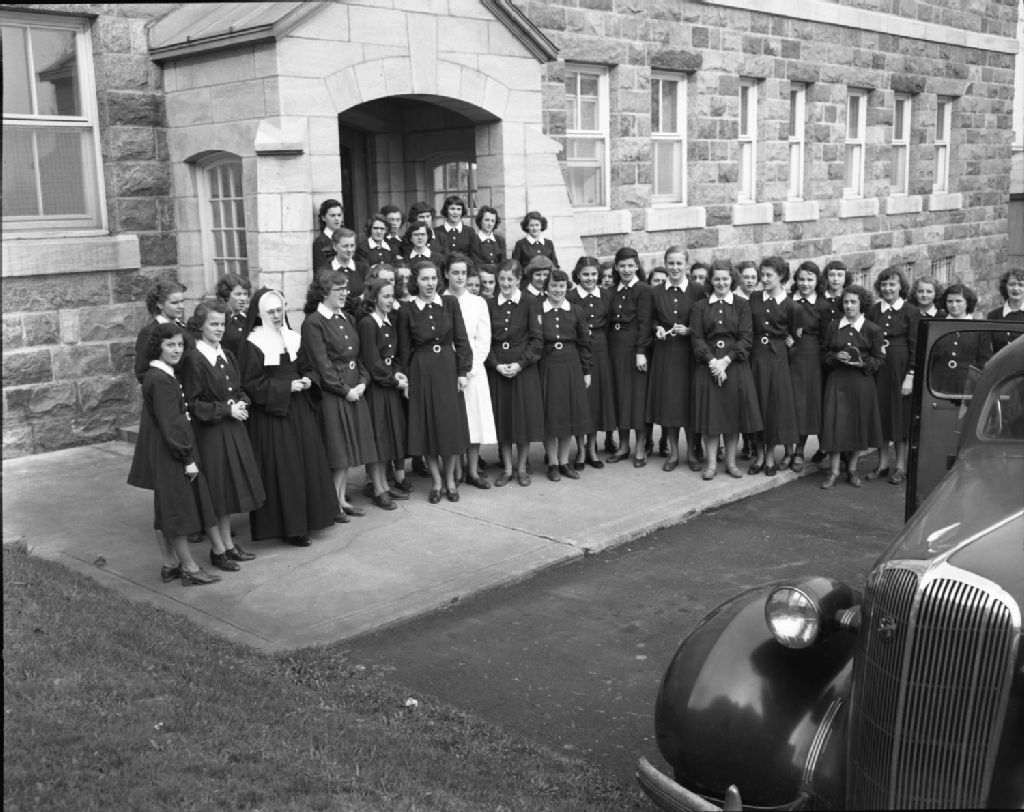 Visite du Docteur Florence O'Neill, Département de l'Instruction publique de Terre-Neuve. Départ des visiteurs. École supérieure de Loretteville