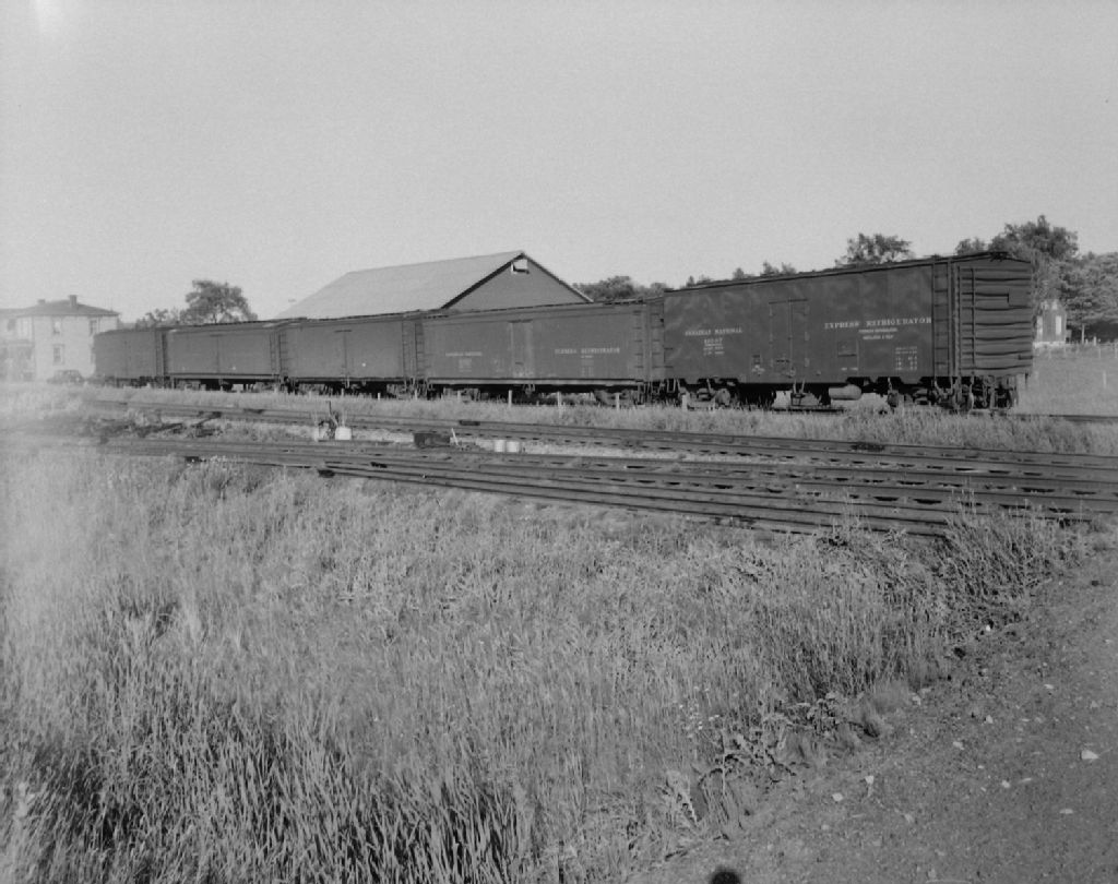 Des « chars réfrigérateurs », prêts pour l'expédition des fraises sur le marché de Montréal, Toronto, London. La Durantaye, comté de Bellechasse, 1949, Archives nationales à Québec, Fonds Ministère de la Culture et des Communications, (03Q,E6,S7,SS1,D2,P69972), Neuville Bazin.