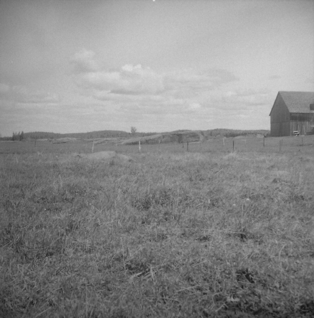 Plucking glaciaire, bosses d'anorthosite rabotées et arondies par les glaciers. Ces buttes basses émergeant de la plaine d'alluvion Champlain à Saint-Coeur-de-Marie, comté de Lac Saint-Jean, 1950, Archives nationales à Québec, Fonds Ministère de la Culture et des Communications, (03Q,E6,S7,SS1,D2,P70511), Auguste Scott.