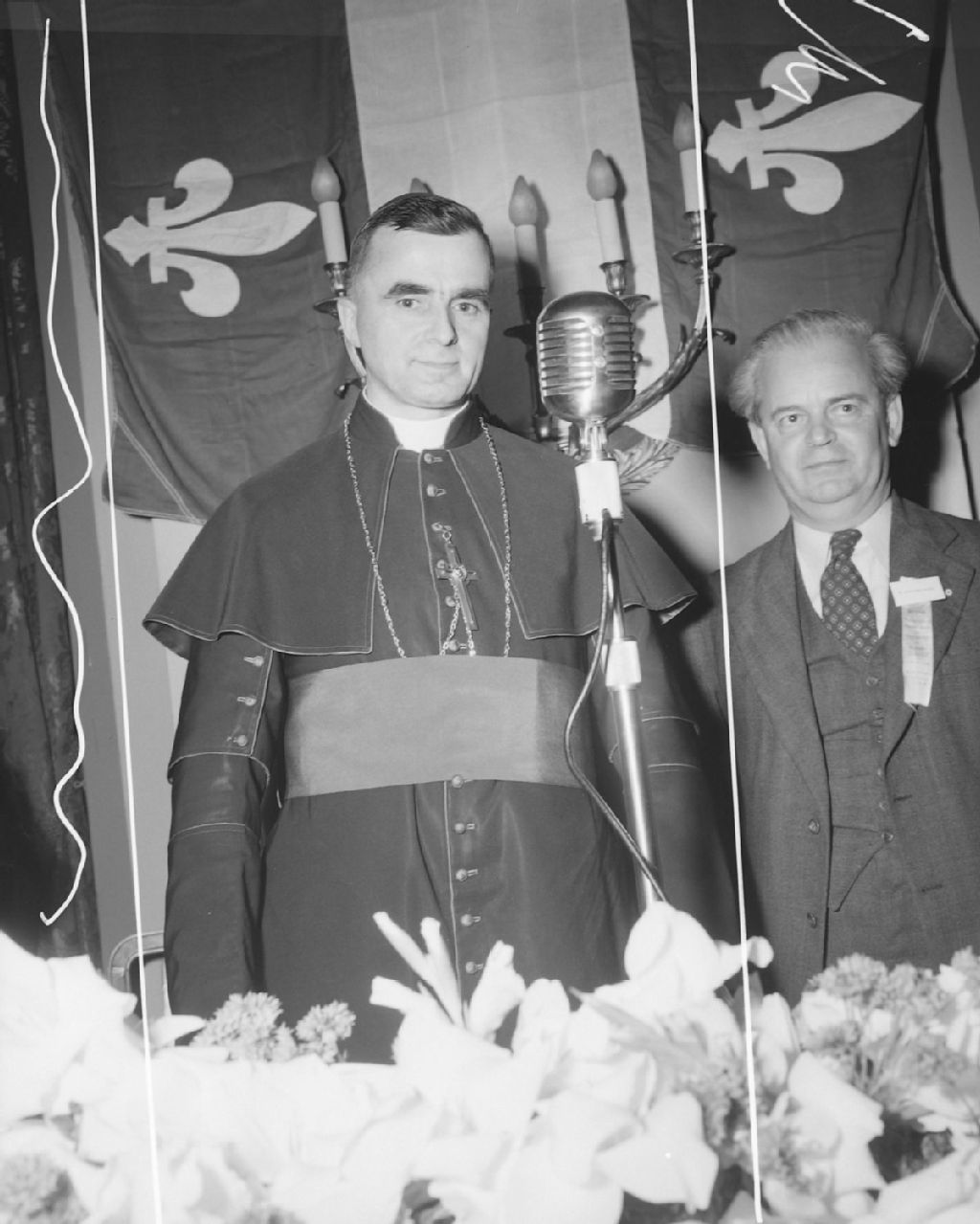 Son Excellence monseigneur Maurice Roy, au micro durant le dîner d'état offert aux membres de l'Association canadienne des éducateurs de langue française. Château Frontenac