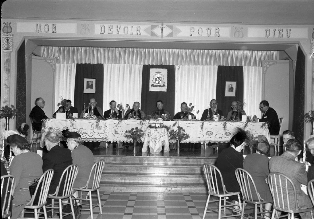 vue générale de la table d'honneur au banquet offert à Mgr Tessier à l'école supérieure de l'enseignement ménager du Cap de la Madeleine