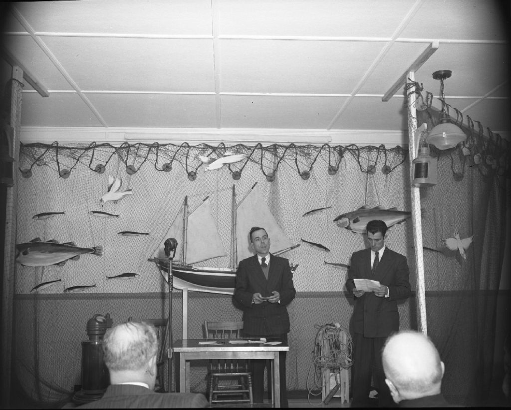 Collation des diplômes aux élèves du 1er cours régulier de l'École des Pêcheries de Grande-Rivière, 1950, Archives nationales à Québec, Fonds Ministère de la Culture et des Communications, (03Q,E6,S7,SS1,D2,P75196), Gustave Bédard.