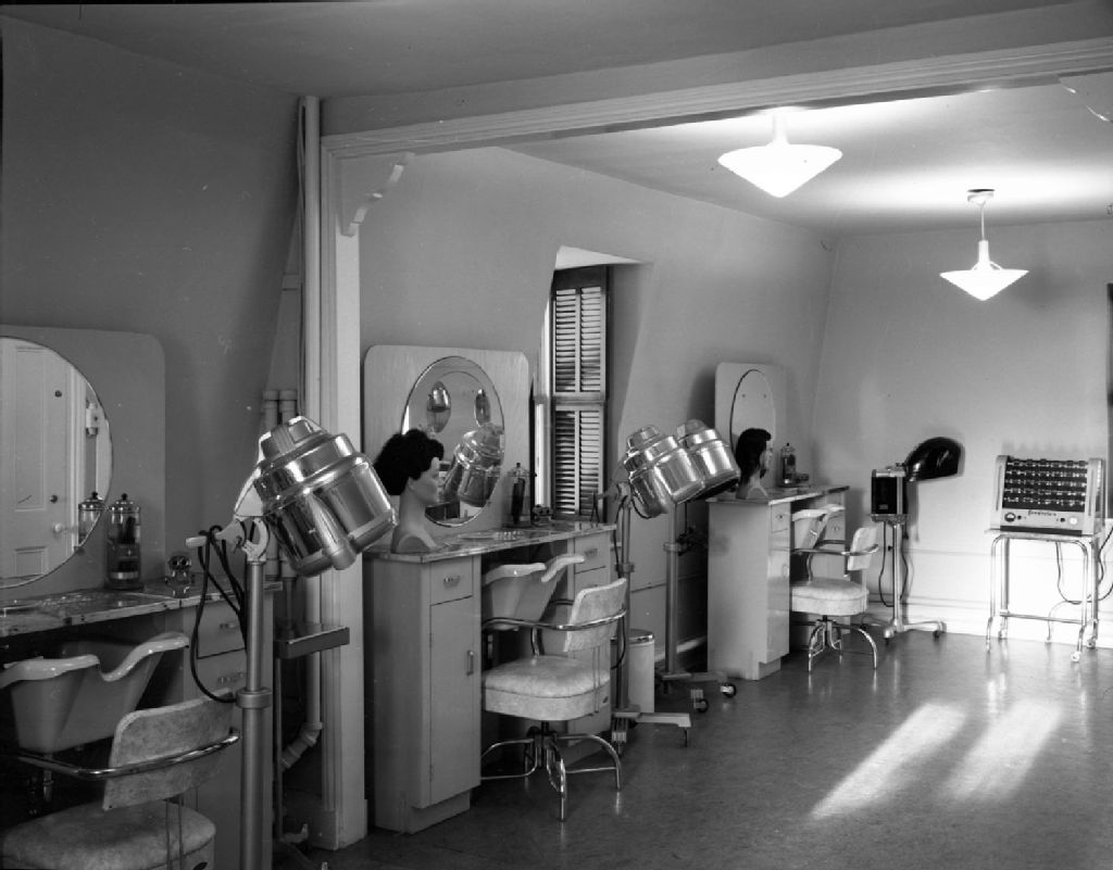 Salon de coiffure. École technique, boulevard Langelier, Québec, 1950, Archives nationales à Québec, Fonds Ministère de la Culture et des Communications, (03Q,E6,S7,SS1,D2,P75511), Neuville Bazin.