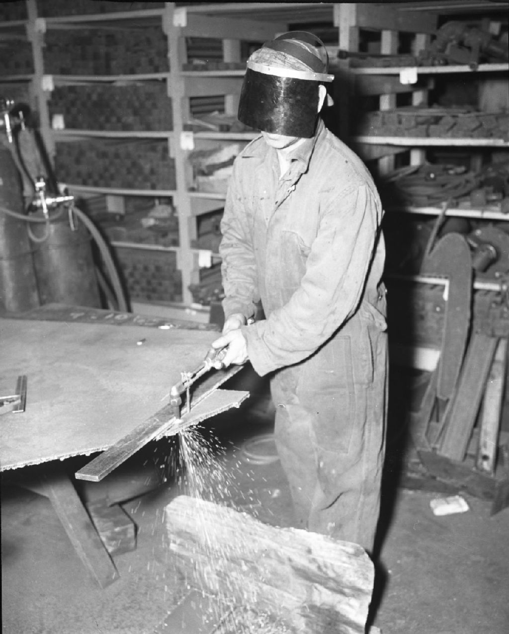 Monsieur Thomas Fortin, soudeur au travail à l'atelier de Saint-Malo.