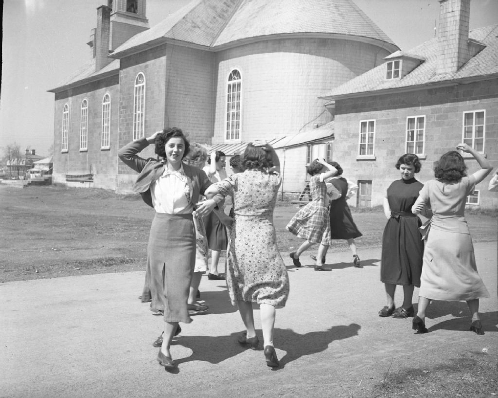 Cours de couture. Saint-Laurent, Île-d'Orléans, 1950, Archives nationales à Québec, Fonds Ministère de la Culture et des Communications, (03Q,E6,S7,SS1,D2,P76102), Neuville Bazin.