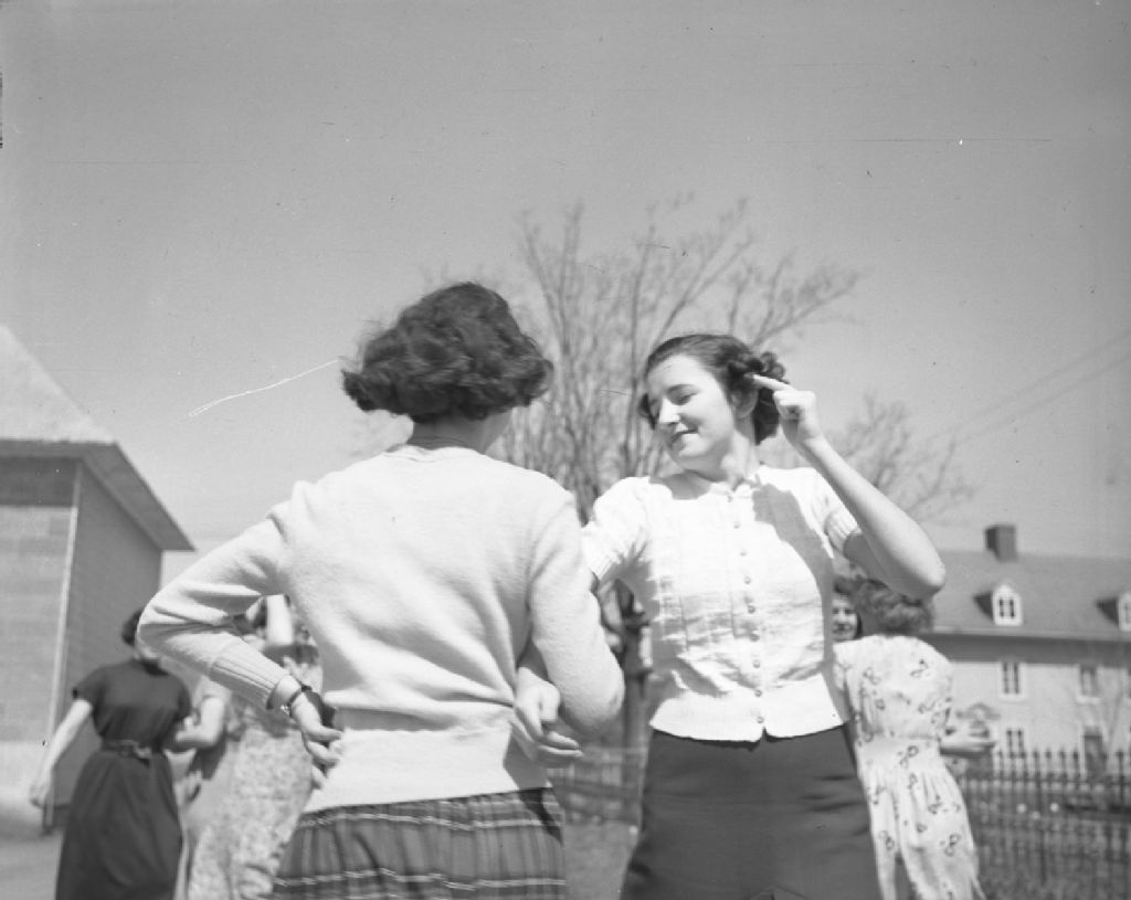 Cours de couture. Saint-Laurent, Île-d'Orléans, 1950, Archives nationales à Québec, Fonds Ministère de la Culture et des Communications, (03Q,E6,S7,SS1,D2,P76108), Neuville Bazin.