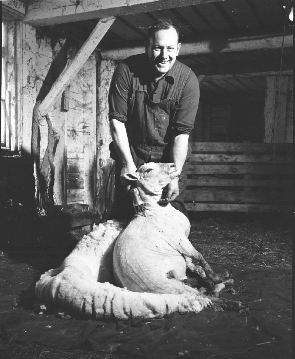 Tonte de moutons chez Slacks Bros. Waterloo, mai 1950., 1950, Archives nationales à Québec, Fonds Ministère de la Culture et des Communications, (03Q,E6,S7,SS1,D2,P76162), Omer Beaudoin.