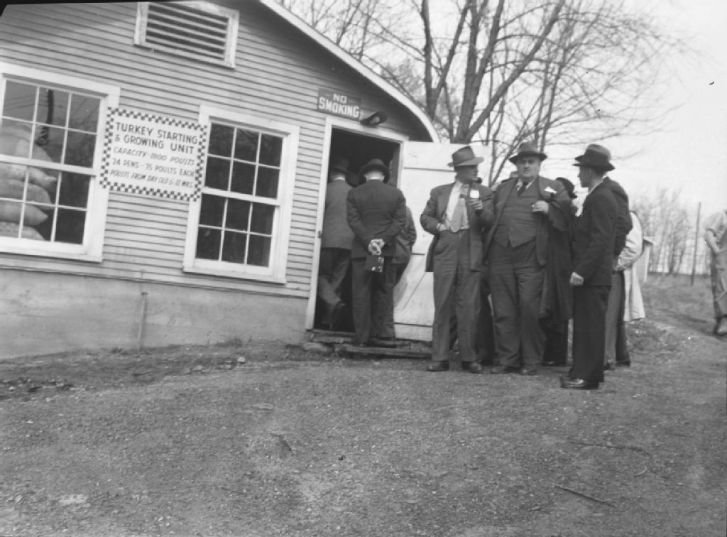 Groupe de Québécois; au centre, monsieur Louis-Philippe Dufour, président de la Coopérative avicole du Québec, Saint-Louis, Missouri
