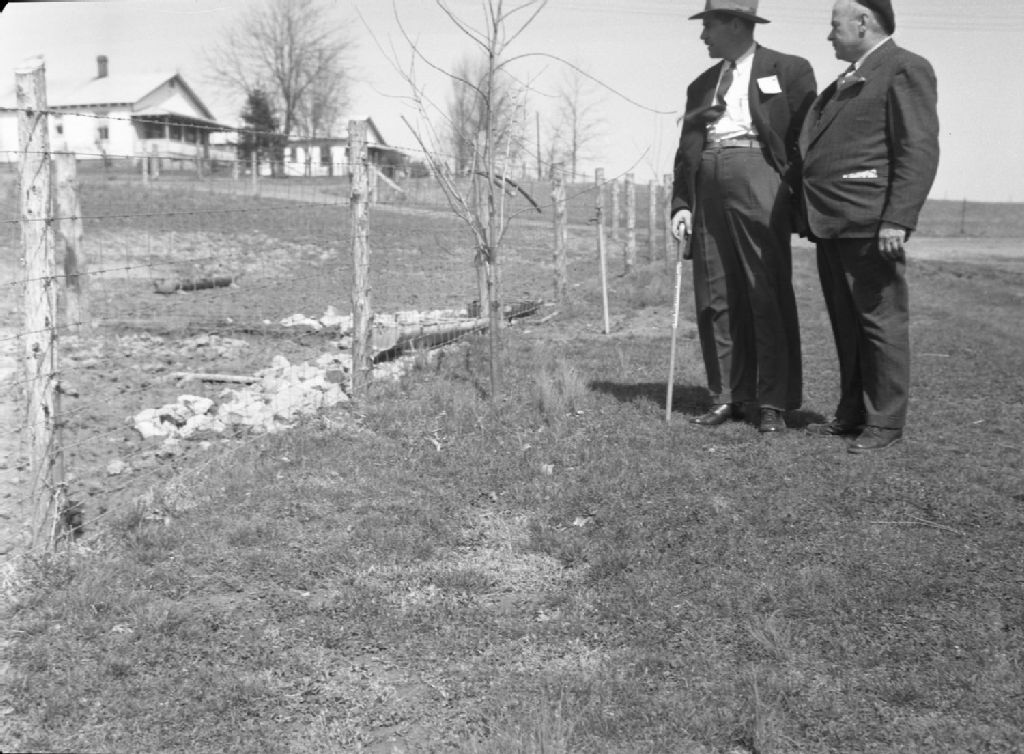 Messieurs Brassard et Dorion, agronomes, à la ferme expérimentale Purina, Saint-Louis, Missouri