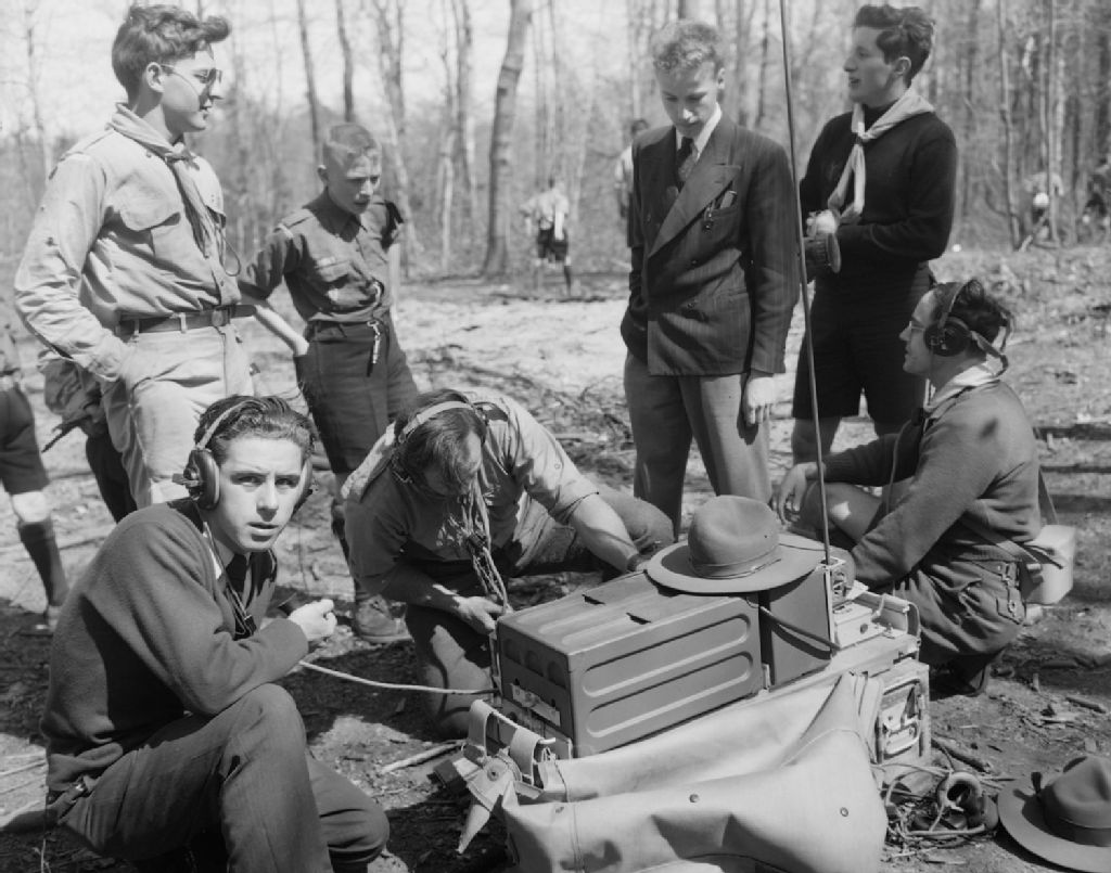 Le chef Robert Hamel suivant par radio le grand jeu. Camp Taschereau