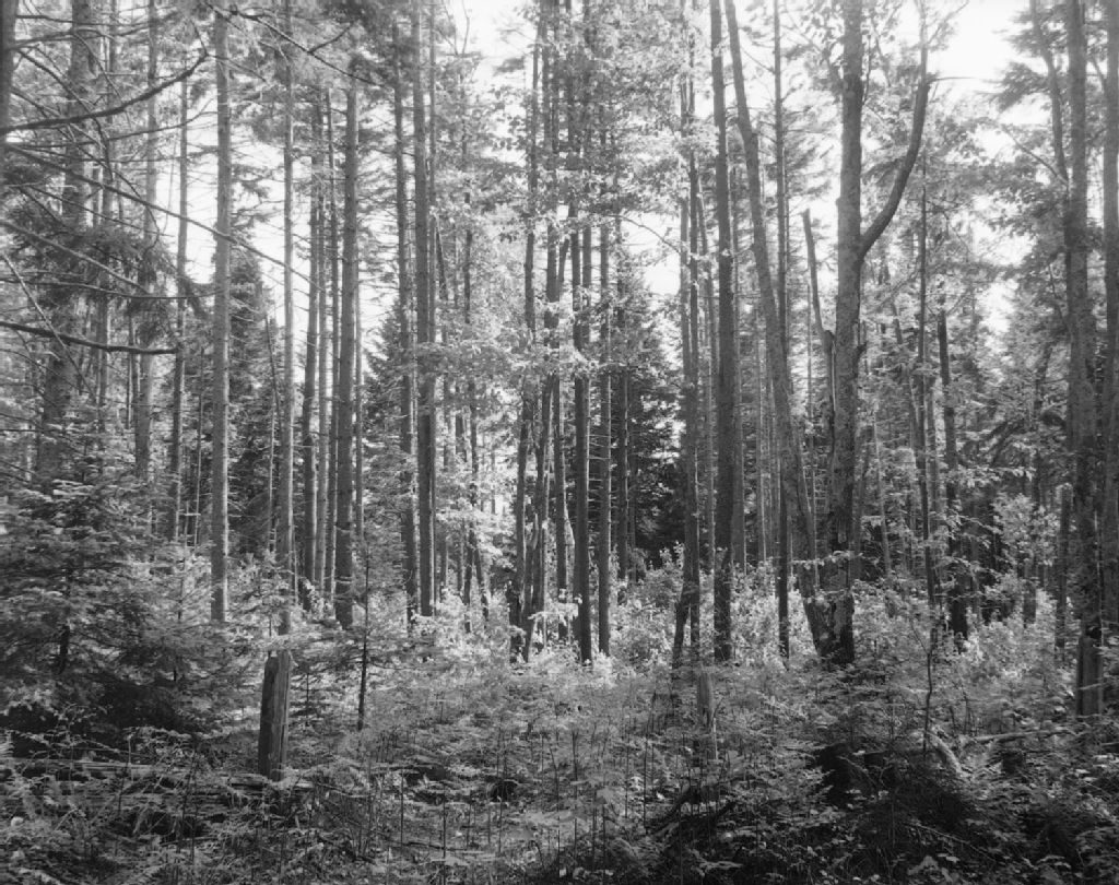 Boisé de ferme peuplement de résineux , ferme Stanislas Guillemette - Rang Saint-Pierre, Saint-Isidore, 1950, Archives nationales à Québec, Fonds Ministère de la Culture et des Communications, (03Q,E6,S7,SS1,D2,P77046), J.W. Michaud.