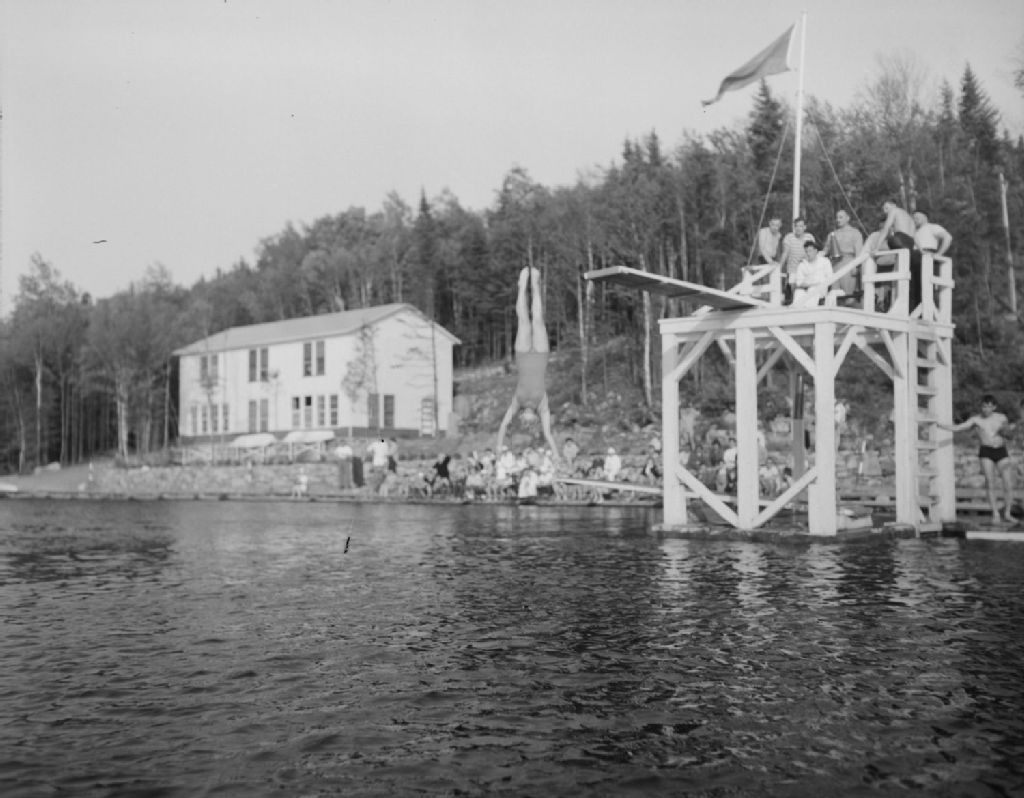 Représentation aquatique de plongeon. École provinciale au lac Trois-Saumons