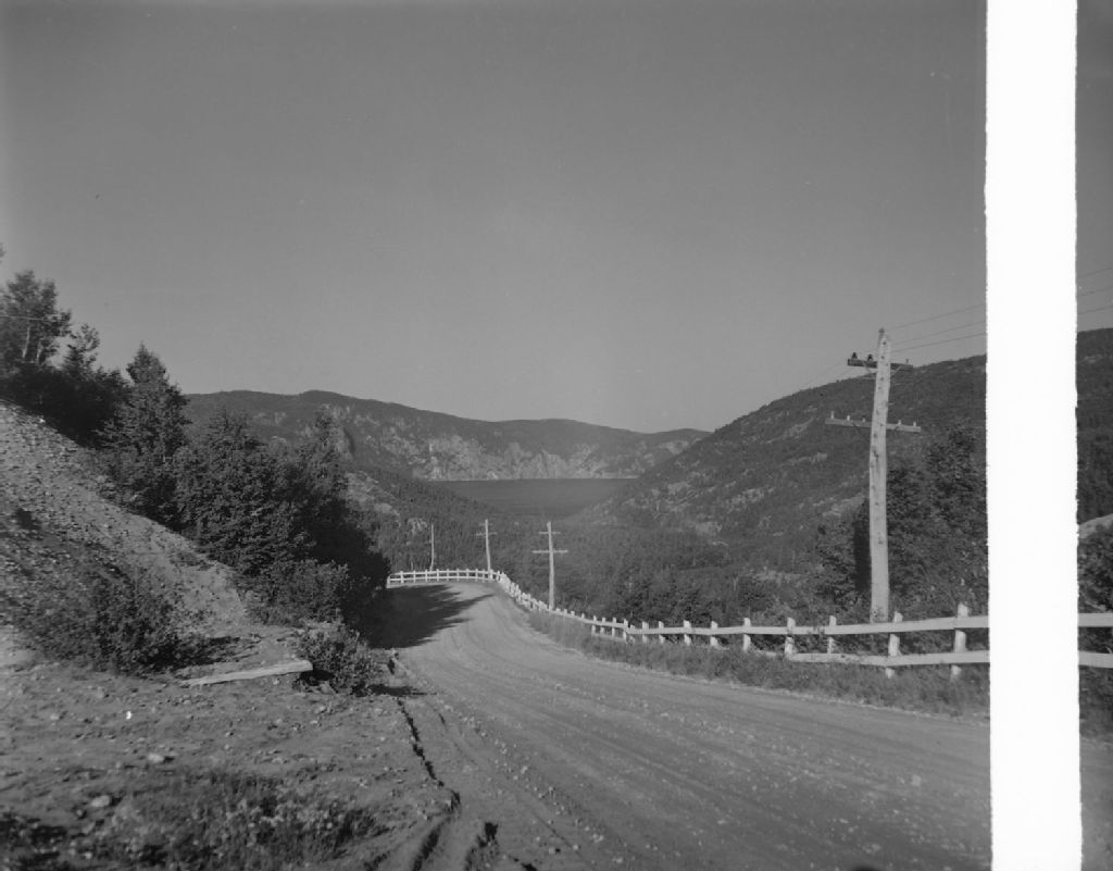 Route, montagnes et mer vus du coté est de Tadoussac