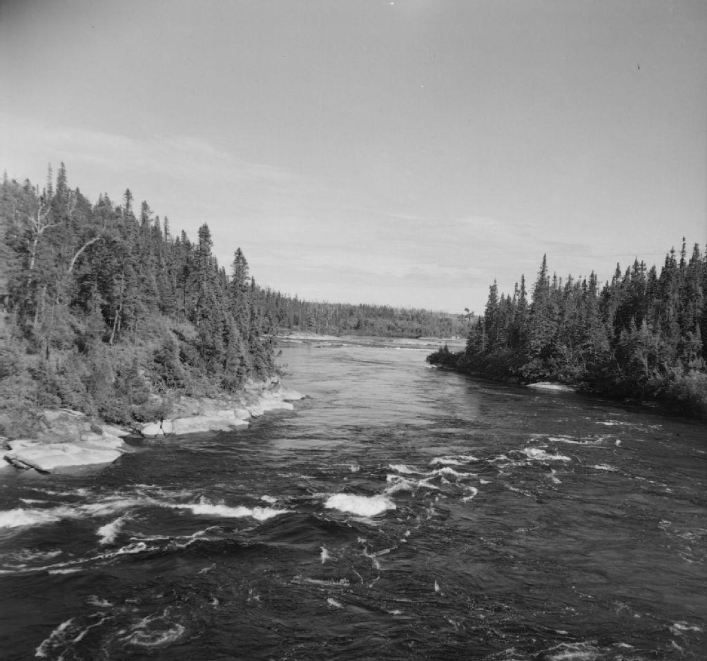 Rivière aux Outardes, 1950, Archives nationales à Québec, Fonds Ministère de la Culture et des Communications, (03Q,E6,S7,SS1,D2,P78111), Paul Carpentier.