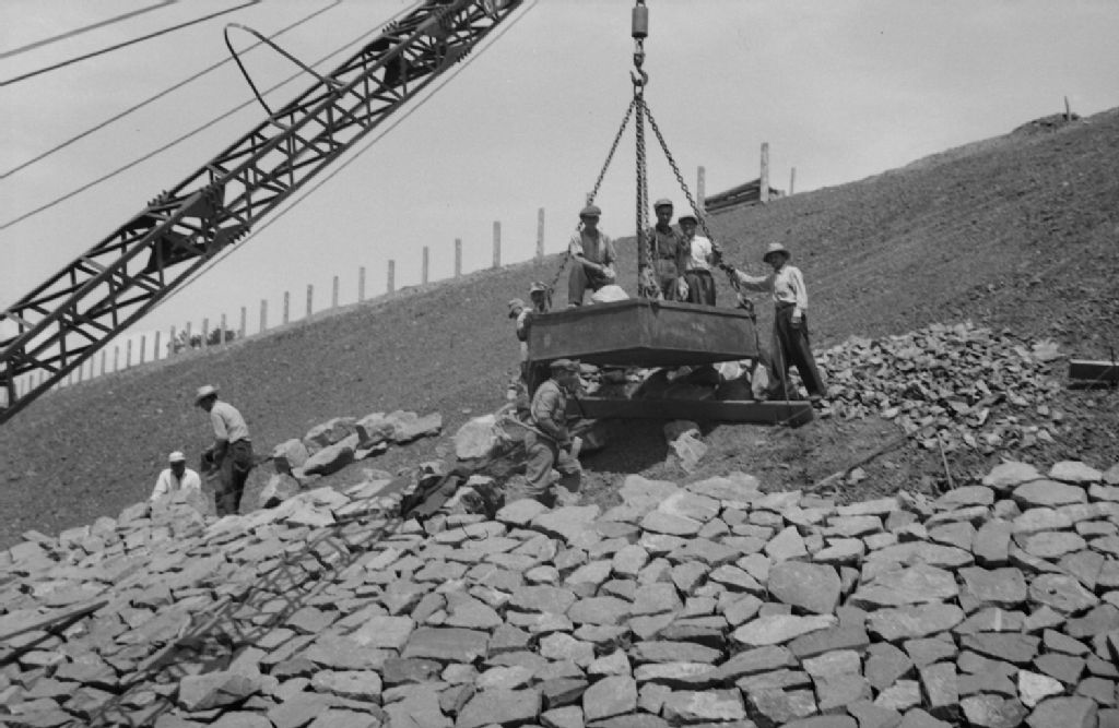 Pont de Québec sur le fleuve Saint-Laurent entre Sainte-Foy comté Québec et Saint-Nicolas comté Lévis, 1950, Archives nationales à Québec, Fonds Ministère de la Culture et des Communications, (03Q,E6,S7,SS1,D2,P78198), Camille Milot.