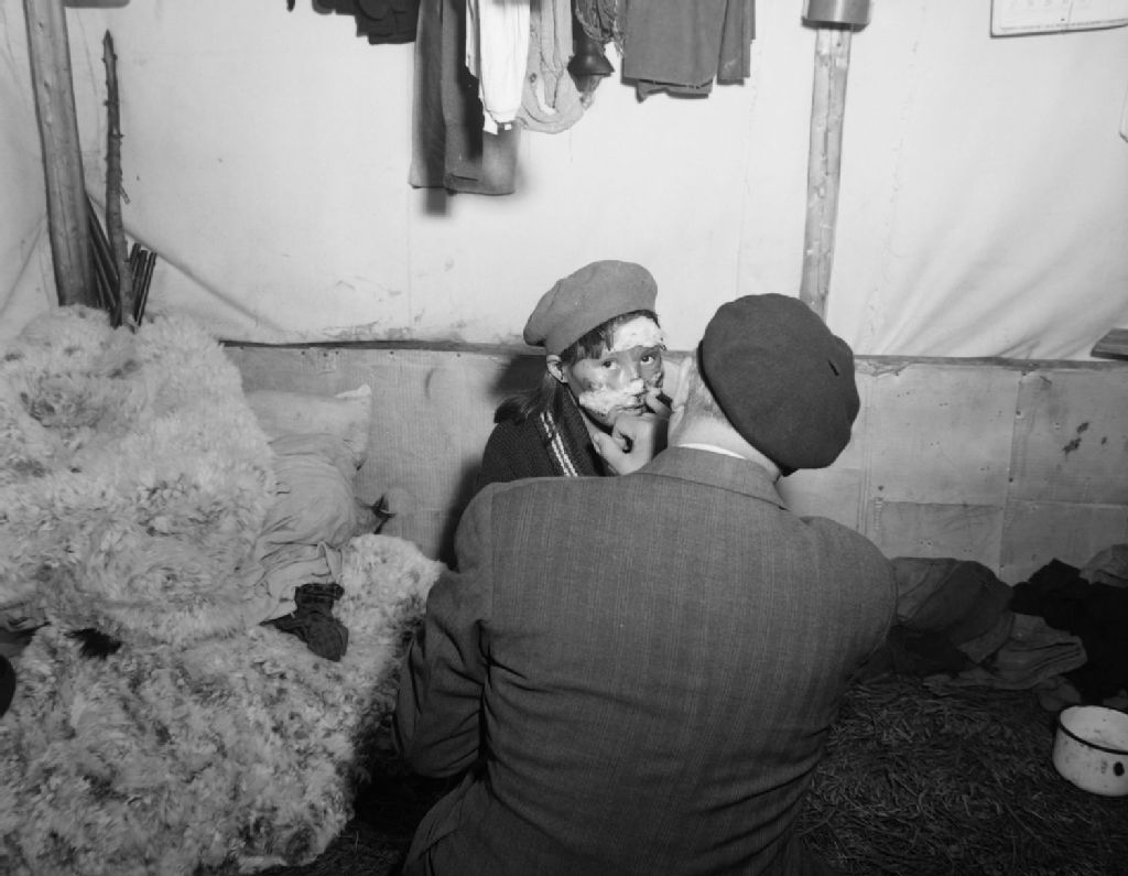 L'Honorable Camille-Eugène Pouliot, ministre de la Chasse et des Pêcheries, panse les brûlures d'une amériendienne blessée en allumant une lampe à pètrole au Grand Lac Mistassini