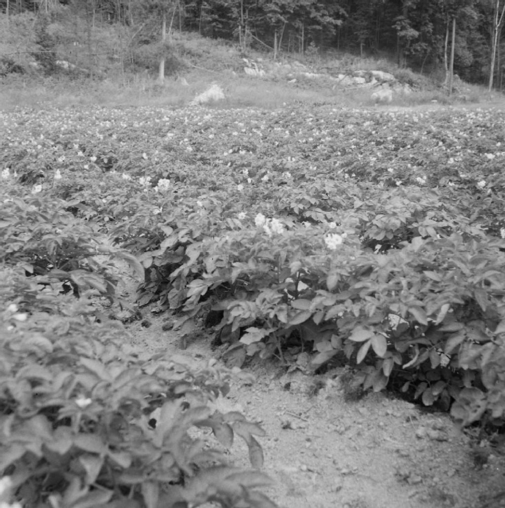 Pommes de terre en fleurs chez Émile Saint-Louis, Notre-Dame de Pontmain, Labelle, 1950, Archives nationales à Québec, Fonds Ministère de la Culture et des Communications, (03Q,E6,S7,SS1,D2,P79317), Gérard Ouellet.