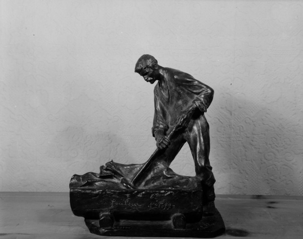 Fouleur d'étoffe par Alfred Laliberté au Musée de la province, 1950, Archives nationales à Québec, Fonds Ministère de la Culture et des Communications, (03Q,E6,S7,SS1,D2,P81860), Neuville Bazin.