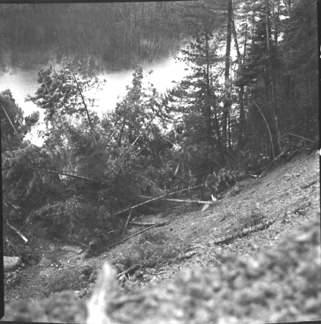 Landslide from road down to river. Cascapédia.
