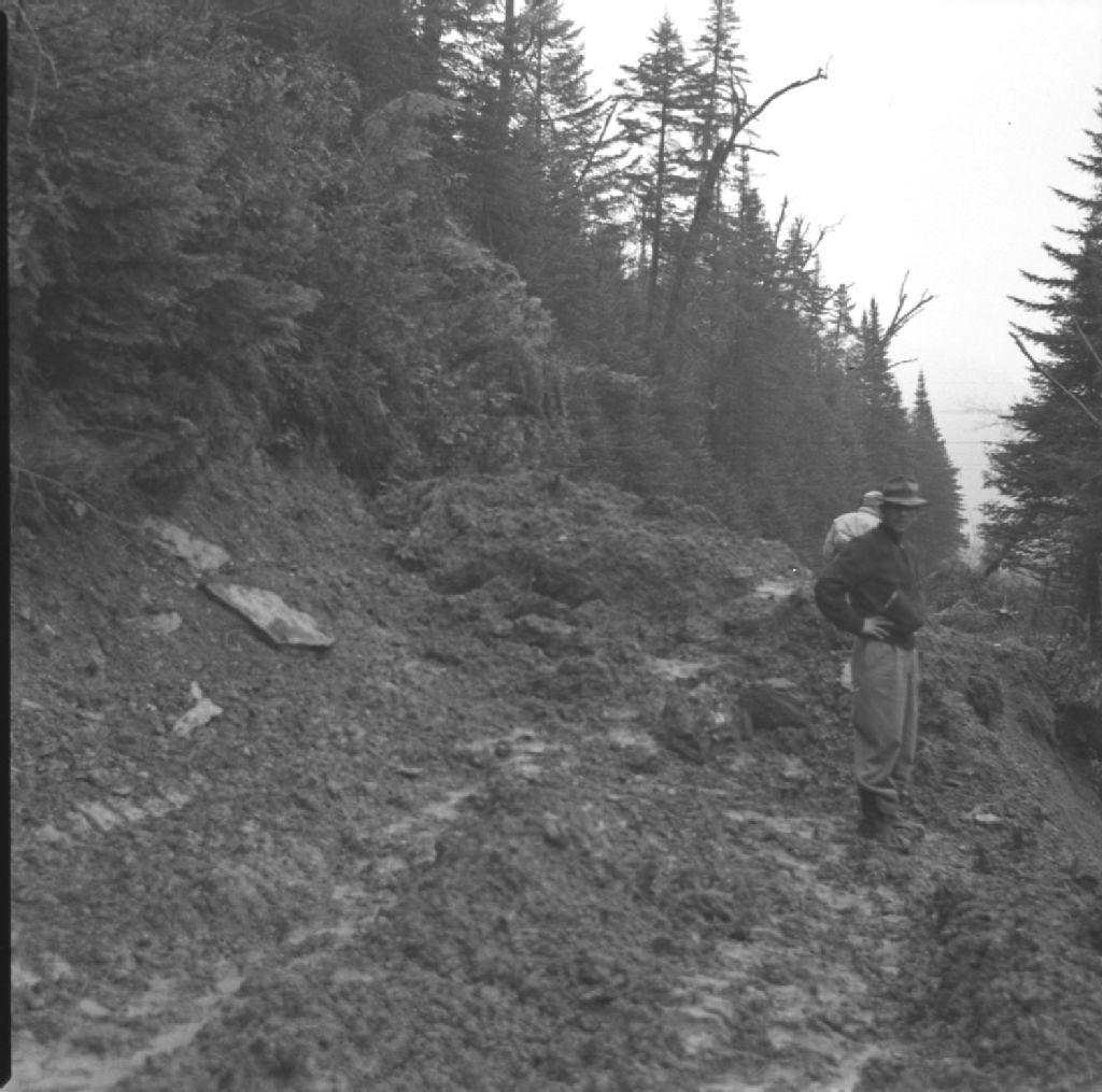 Landslide along road which is completely covered. Cascapédia.