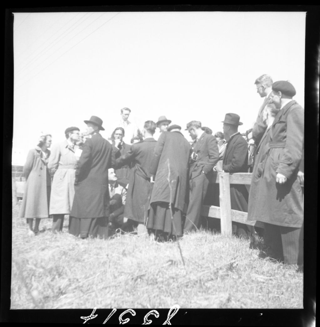 Groupe d'étudiants en géographie suivant avec intéret les explications sur la région de Shawinigan. Almaville, Saint-Maurice