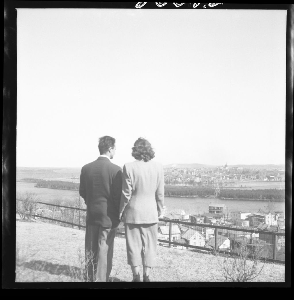 Des hauteurs de Almaville, vue de la rivière Shawinigan, de la ville de Shawinigan et de l'île Melville. Almaville, Saint-Maurice