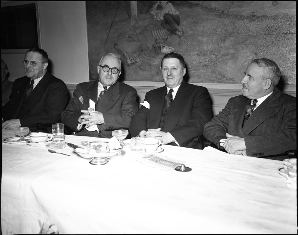 Lunch annuel de l'Association des producteurs et exportateurs de poisson du Québec et du nord du Nouveau-Brunswick. Restaurant Kerhulu. Québec, 1951, Archives nationales à Québec, Fonds Ministère de la Culture et des Communications, (03Q,E6,S7,SS1,D2,P83891), Neuville Bazin.