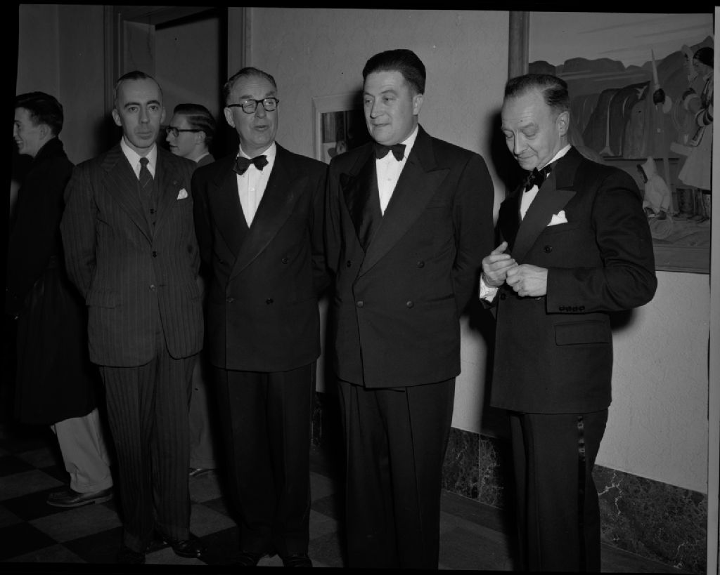 Exposition du 18 avril 1951 au musée de la province. Robert Pilot, V.P., R.C.A., Harold Beament, R.C.A., Madeleine Laliberté, Benoît East, Albert Rousseau