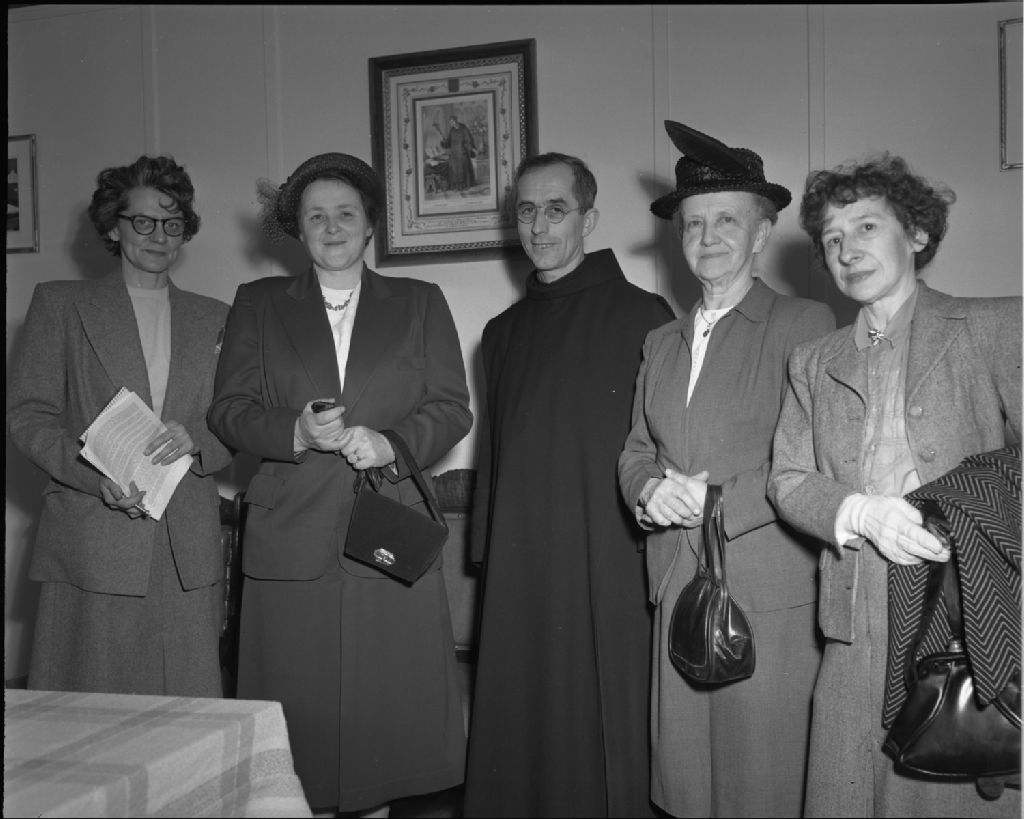 Frère prieur et groupe féminin à l'Hôpital Saint-Augustin, 1951, Archives nationales à Québec, Fonds Ministère de la Culture et des Communications, (03Q,E6,S7,SS1,D2,P84420), Neuville Bazin.