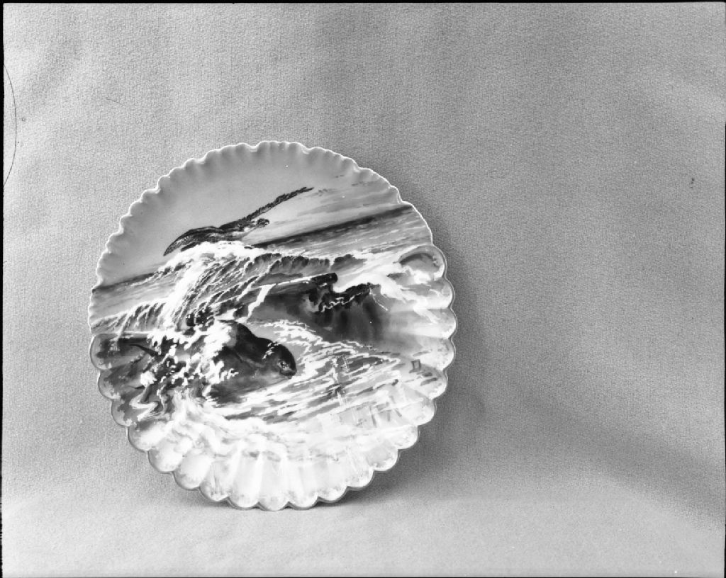 Assiette à l'orfraie et à la loutre (en forme de coquille) au Musée de la province