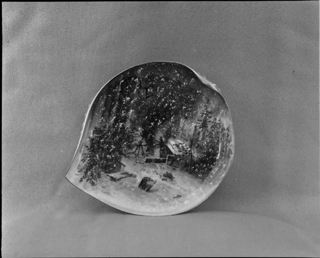 Assiette à déssert au camp de chasseurs en forme de feuille au Musée de la province