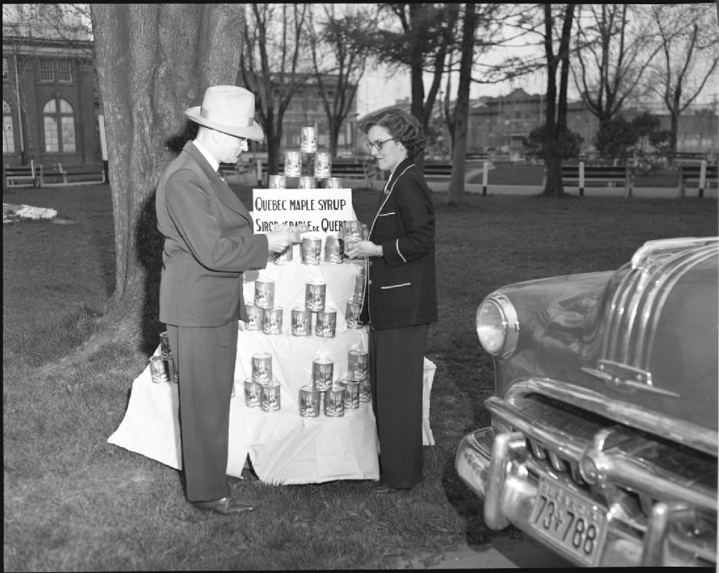 Roadside market. Vente de produits de l'érable., 1951, Archives nationales à Québec, Fonds Ministère de la Culture et des Communications, (03Q,E6,S7,SS1,D2,P84611), Omer Beaudoin.