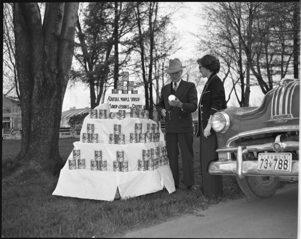 Roadside market. Vente de produits de l'érable., 1951, Archives nationales à Québec, Fonds Ministère de la Culture et des Communications, (03Q,E6,S7,SS1,D2,P84612), Omer Beaudoin.