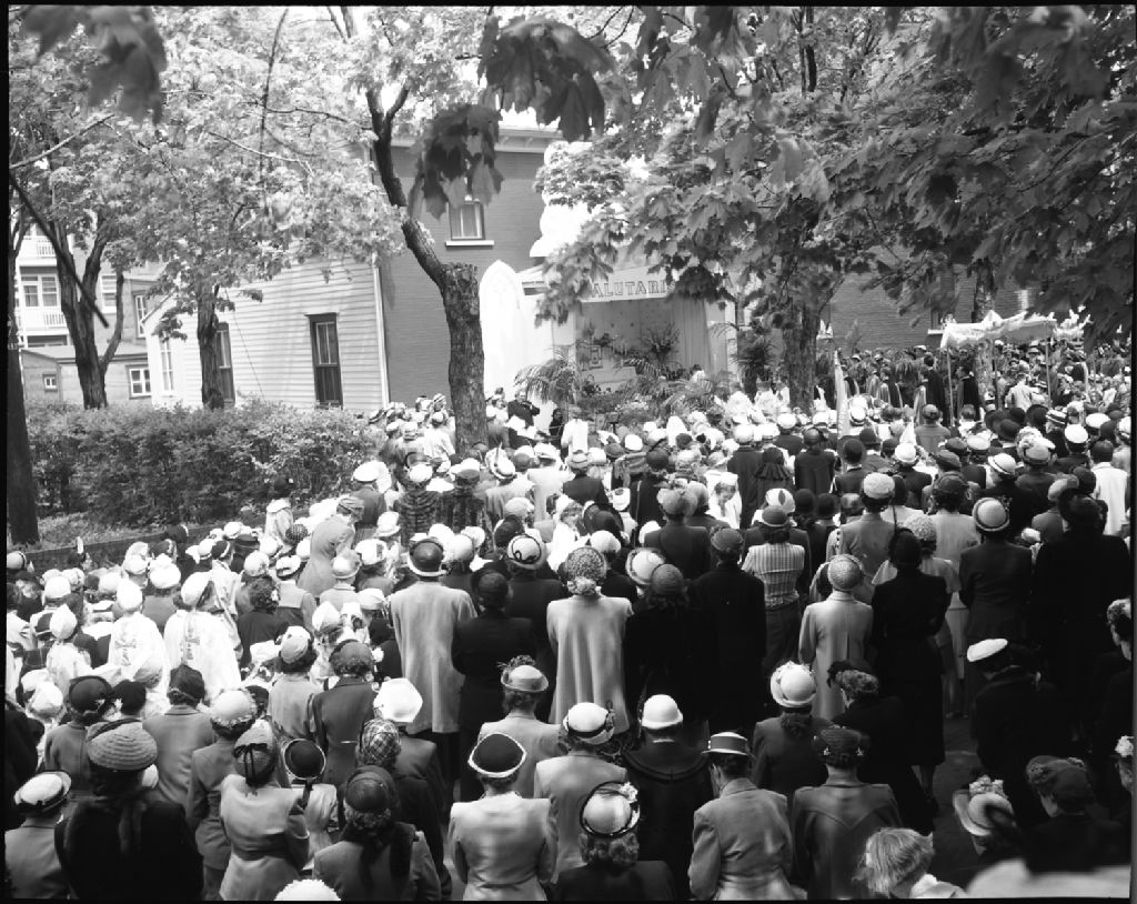 Procession de la Fête-Dieu Saint-Dominique. Québec, 1951, Archives nationales à Québec, Fonds Ministère de la Culture et des Communications, (03Q,E6,S7,SS1,D2,P84763), Neuville Bazin.