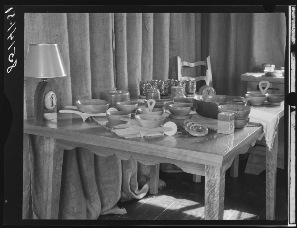 Atelier de menuiserie artisanale (Michel Joncas). Saint-Vallier, comté Bellechasse, 1951, Archives nationales à Québec, Fonds Ministère de la Culture et des Communications, (03Q,E6,S7,SS1,D2,P85141), J.W.Michaud.