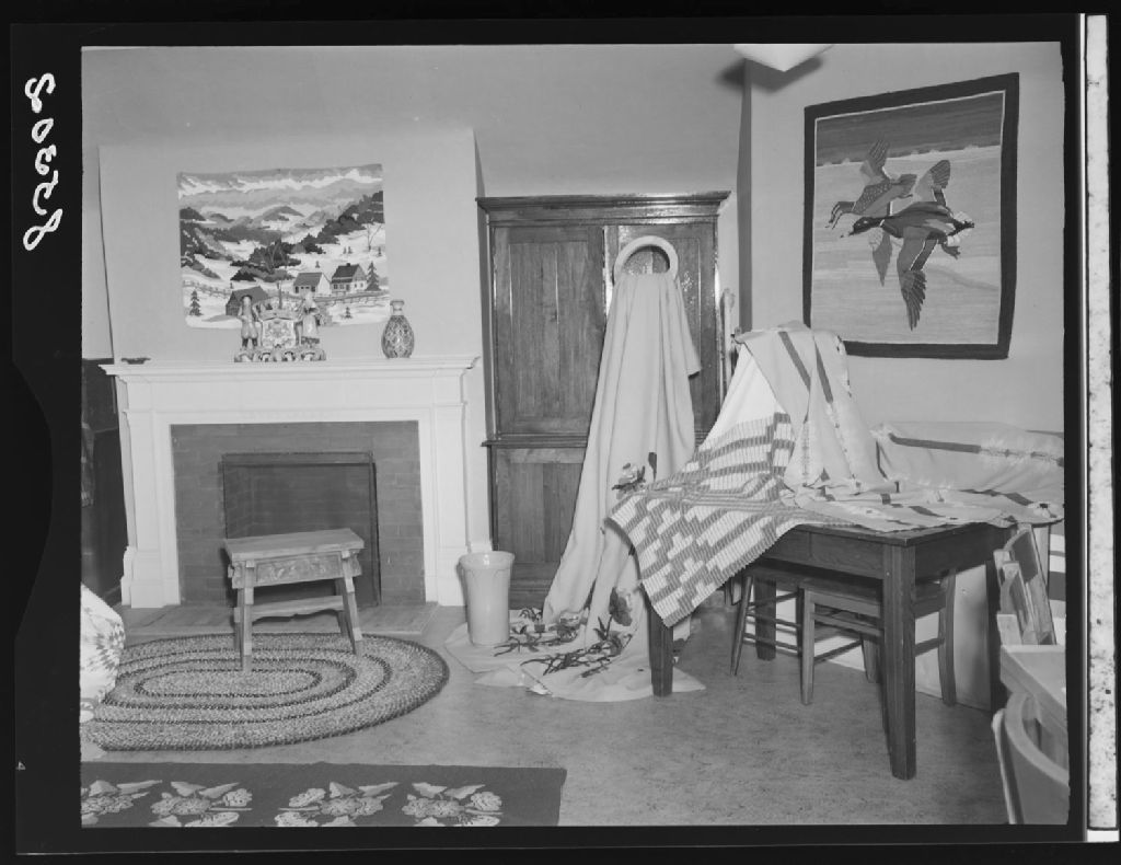 Pièce murales crochetées, tentures tissées, tapis crochetés, et tressés. Collection d'artisanat de l'École des Arts Domestiques